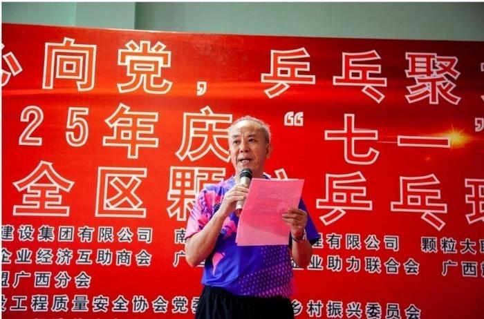 7 月 5 日上午 8 时,为庆祝中国共产党成立 104 周年暨 2025 年 “城建杯” 全区乒乓球邀请赛在南宁市体育场乒乓球馆举行。由广西城建集团有限公司、南宁城建建设集团有限公司、颗粒大联盟广西分会主办;广西中小企业经济互助商会、广西乡村振兴企业助力联合会、广西辉耀乒乓球俱乐部协办,大益茶广西服务商、南宁醇静贸易有限公司、广西汾联酒业有限公司、广西抿元投资控股集团有限公司为本次比赛提供全方位的赞助与保障,让我们能够以饱满的热情和高昂的斗志,共同见证到这场乒乓盛宴!